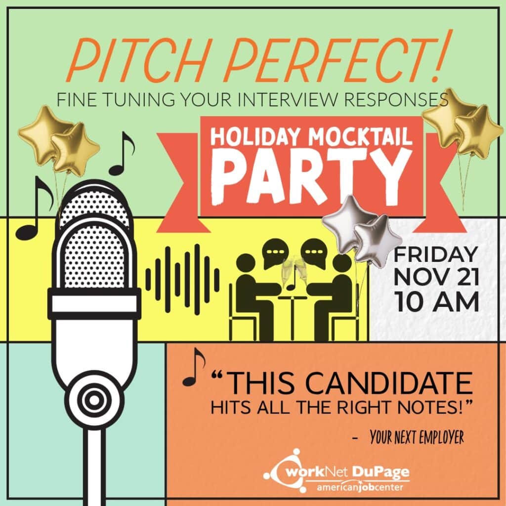 workNet DuPage proudly hosts several recurring, open to the public events, including an all-things job search related discussion group (Let’s Talk Job Search), a guide to interviewing (Pitch Perfect), and a high-tech resume writing workshop (AI Resume Revolution). Browse the event calendar below to see all our upcoming events!